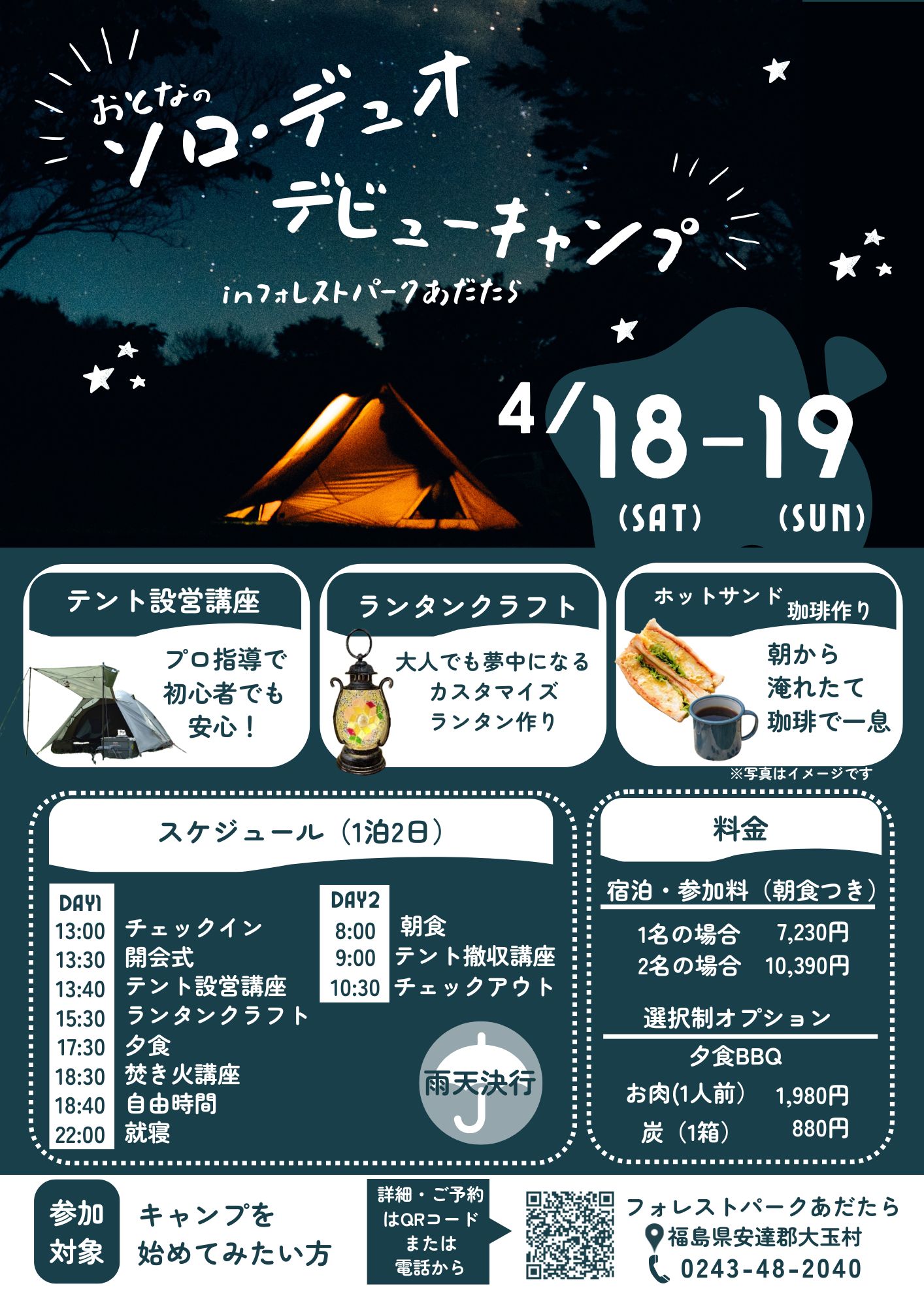 「キャンプを始めてみたいけど、何から始めたらいいかわからない…」そんな方のための大人向けキャンプデビューイベントを開催します!