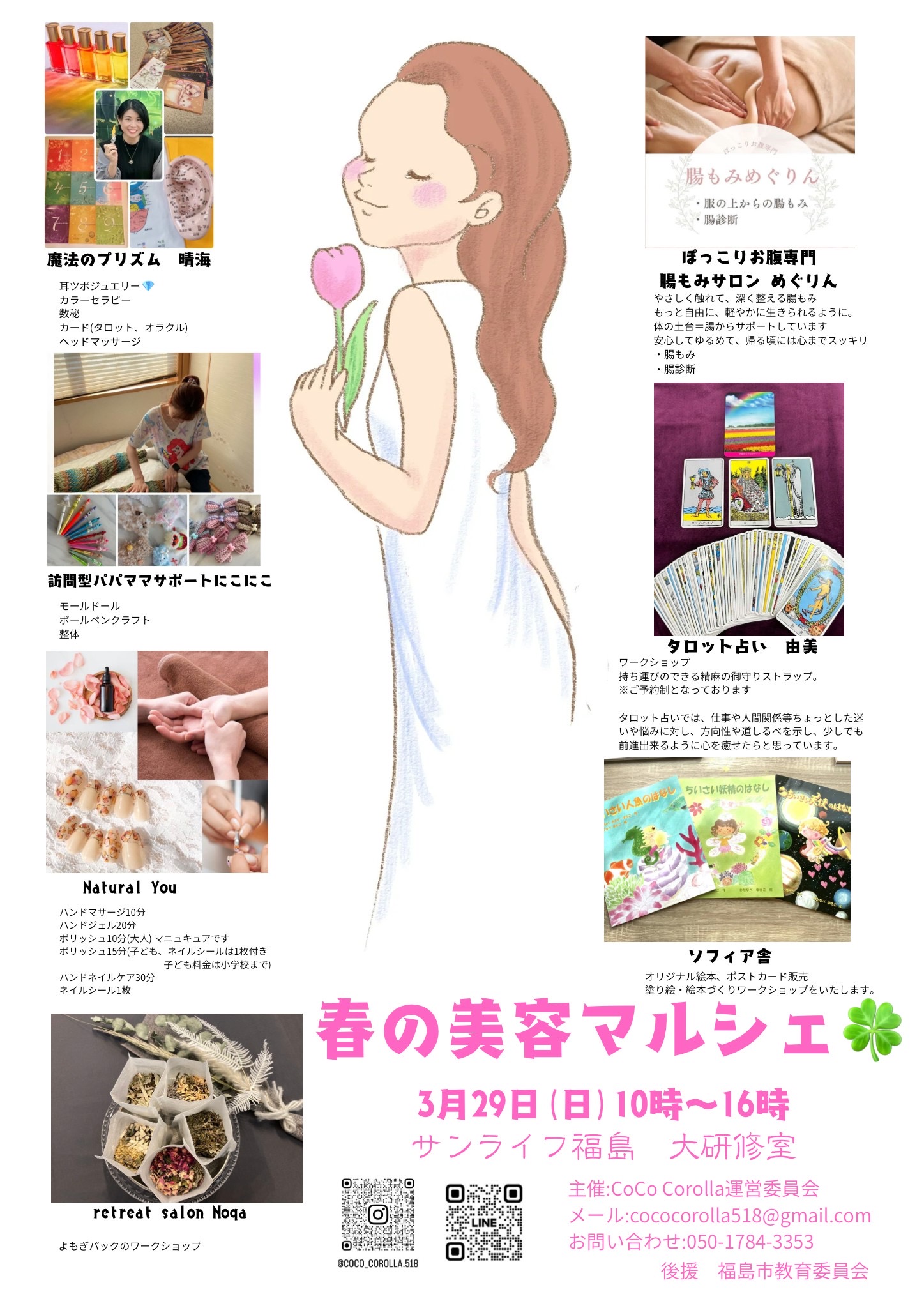 マッサージ、占い、ネイル、腸活マッサージなど癒しのブースが並びました。